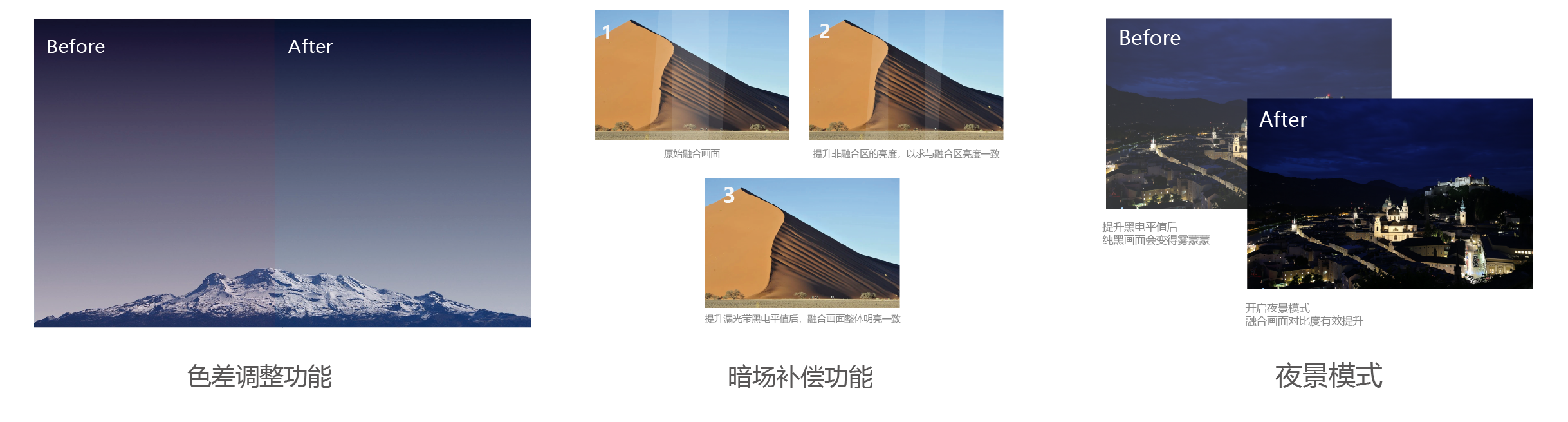色差調(diào)整,暗場(chǎng)補(bǔ)償,多階融合處理,夜景模式等高級(jí)功能再次升級(jí),助力最終呈現(xiàn)完整統(tǒng)一的融合畫(huà)面